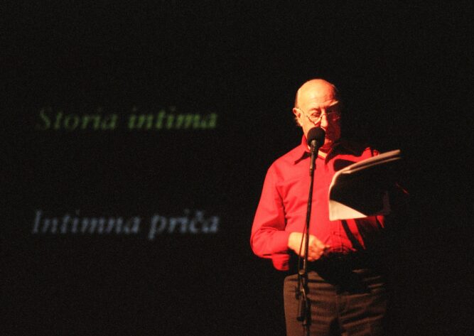 “Innanzitutto, per quanto riguarda il rapporto tra poesia e narrazìone devo precisare che io non ho mai scritto poesie liriche: le mie poesie sono sempre concentrate su quella che posso chiamare «epica della quotidianità». C’è sempre un aneddoto, una piccola storia, un embrione da cui partire. Inoltre, il contatto con il serbo-croato, lingua estremamente sintetica, è stato per me importante. Ho scoperto che le cose significanti si possono dire, in qualsiasi lingua, con una grande economia d’espressione. Sono un nemico terribile della retorica, del romanticismo; la mia poetica è quella di far sì che la parola nomini, non decori. Se si usa un aggettivo, lo si deve fare perché è funzionale, necessario, in caso contrario, è meglio farne a meno. Il primo compito della parola è nominare; poi, se veramente è necessario, metaforizzare.” (idem, p. 370).